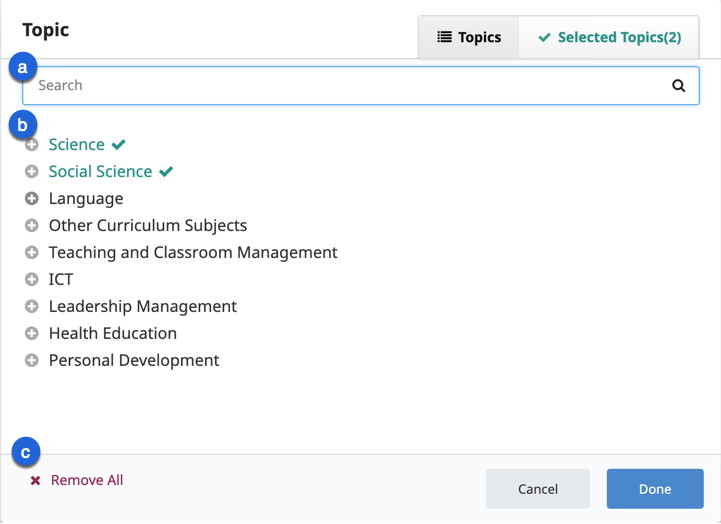 DIKSHA hosts a wide variety of content. Content published on DIKSHA are generally centred around one or more concepts. These concepts are called Topics on DIKSHA. To ensure that any content created or published on DIKSHA is easily discovered by users, as a best practice, all content creators are instructed to associate any content they create with a topic. The topic selector feature in DIKSHA provides an exhaustive list of topics for the content creators to choose from. This section provides detailed instructions on how to select topics from this topic selector while creating content.