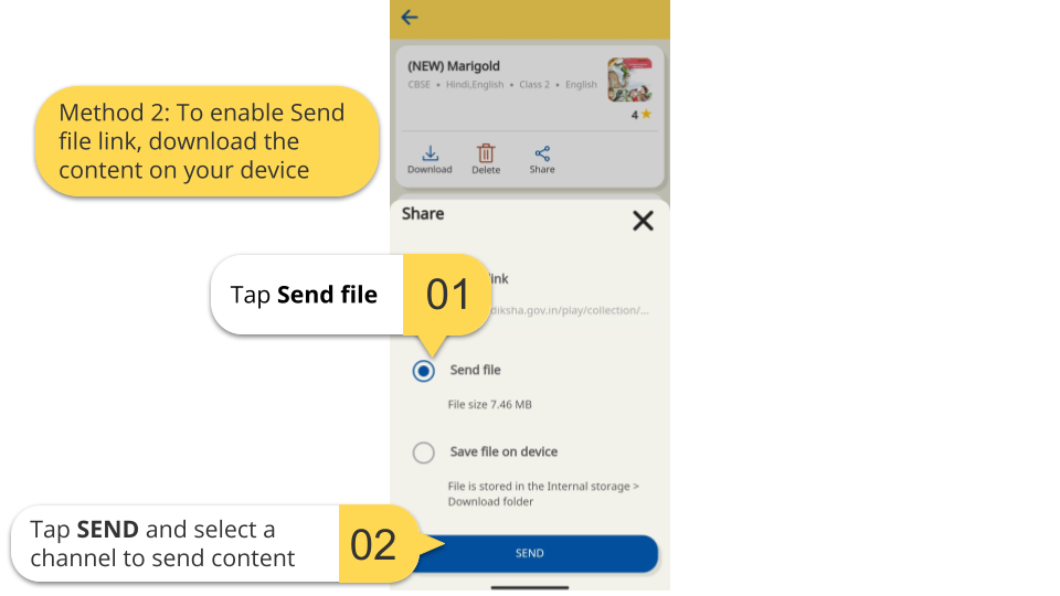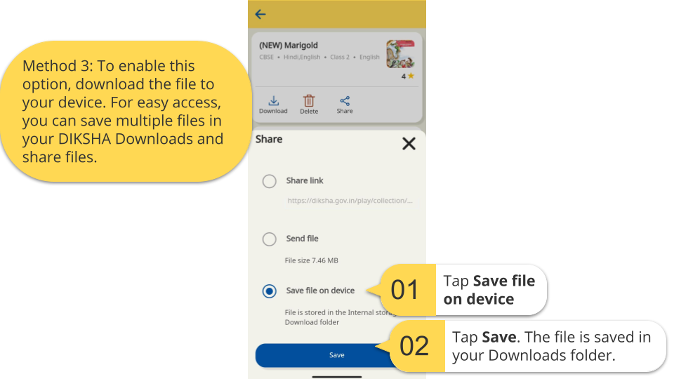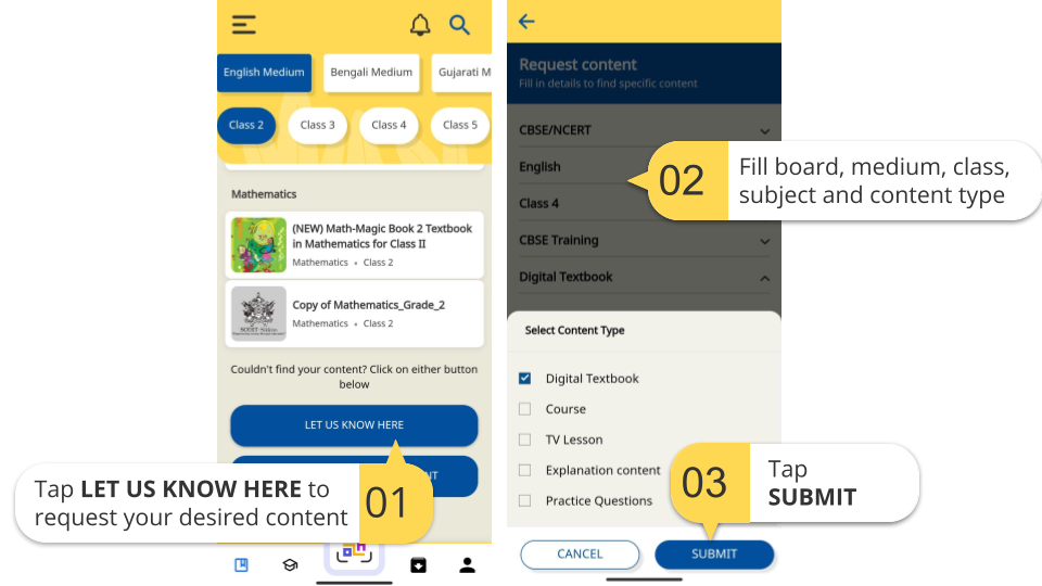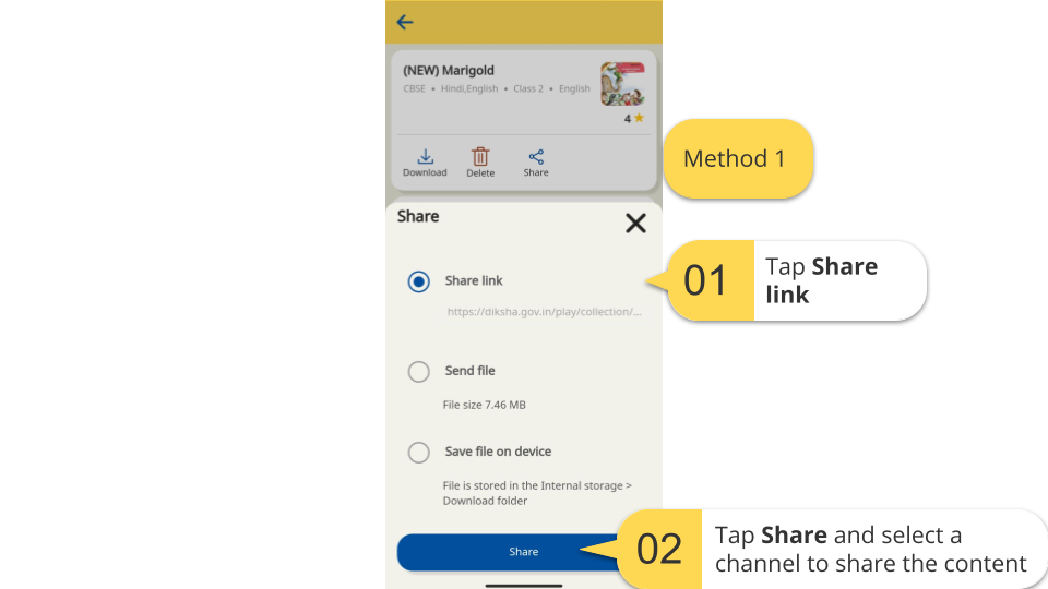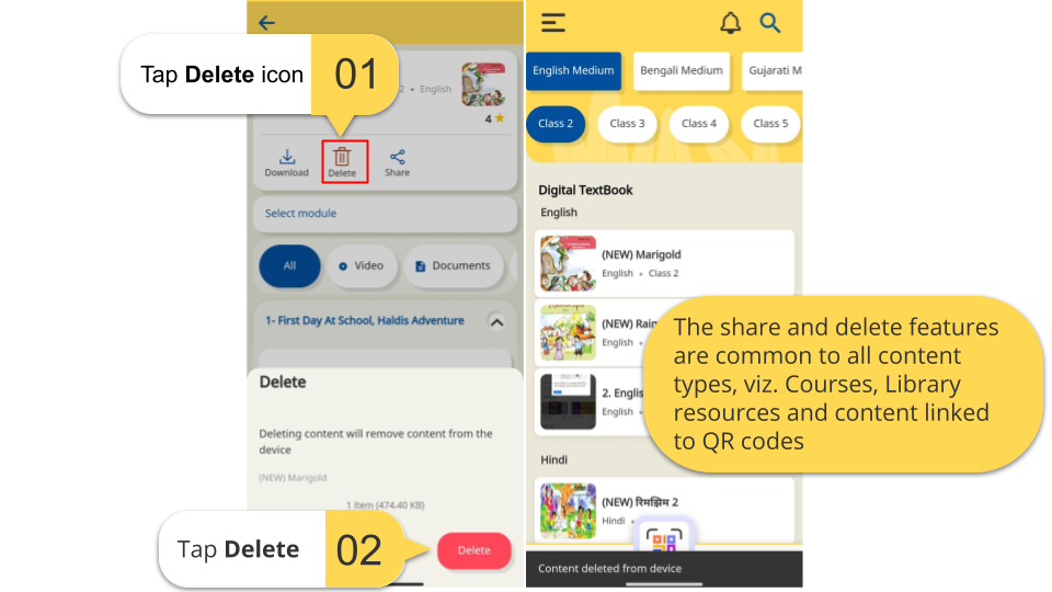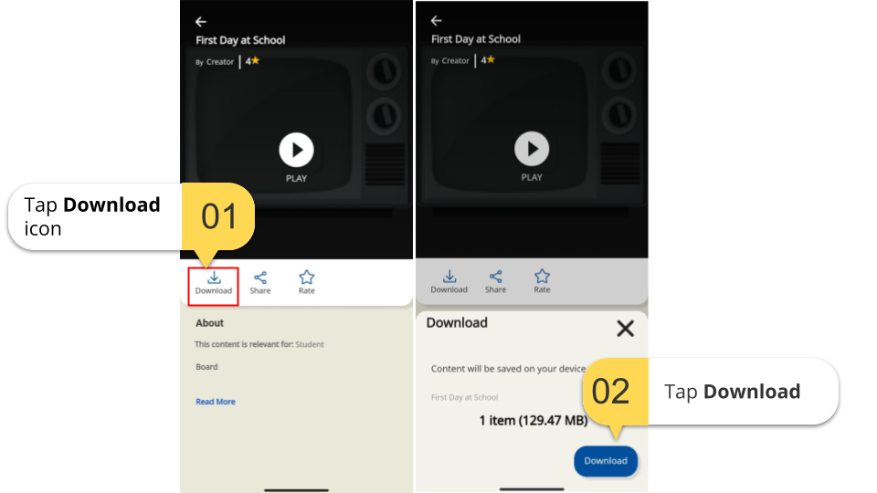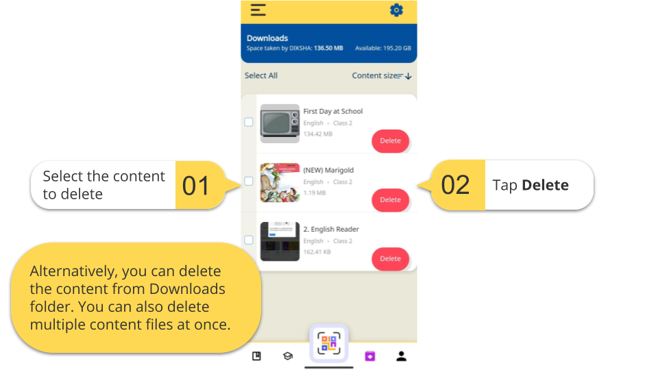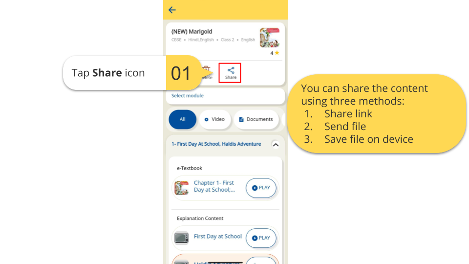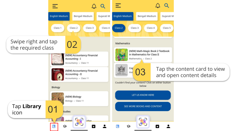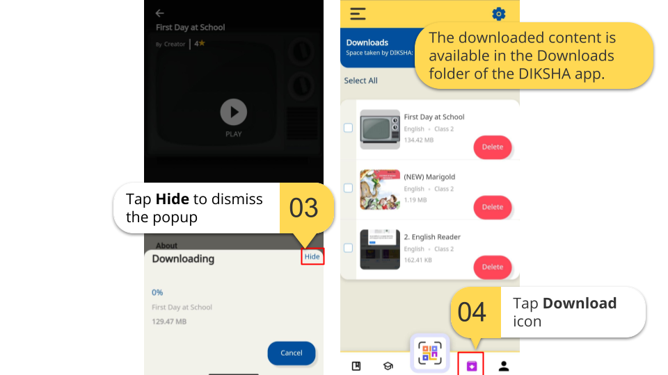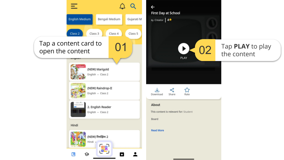 You can view the selected content on DIKSHA mobile app from the Library. Both anonymous and signed-in users can play and view the content.