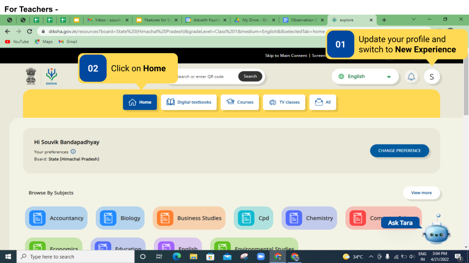 • Updated profile with the board, sub role, and location (state, district, and other details)